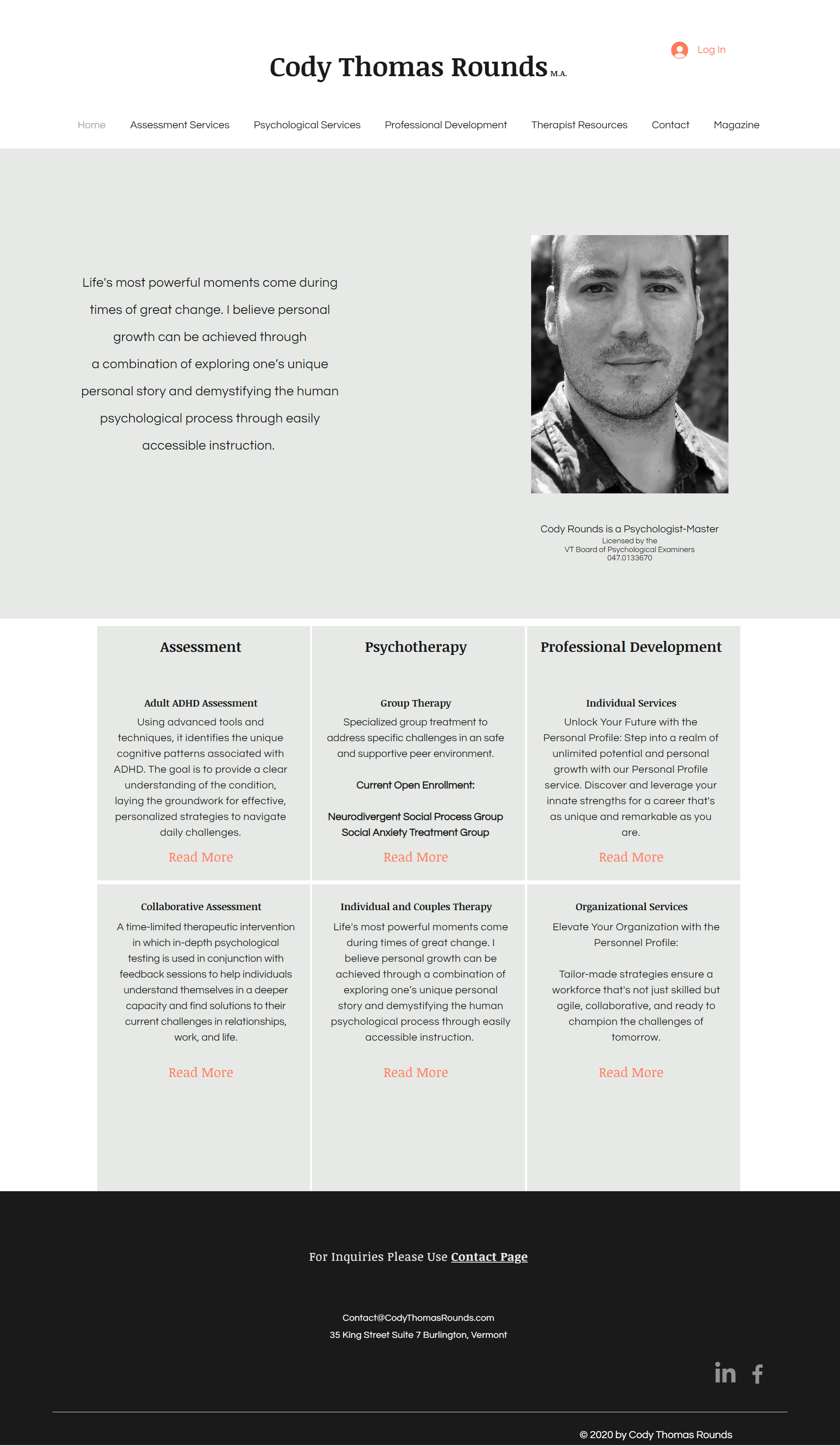 Leadership Consultant, Clinical Psychologist-MasterCody Thomas Rounds is recognized as a distinguished corporate consultant and psychological assessment specialist, based in Burlington, VT. A blend of executive coaching and strategic leadership development is offered, aimed at enhancing the efficacy of organizational leaders and teams. His approach, integrating in-depth psychological assessments with customized training solutions, is designed to elevate leadership skills and achieve business objectives effectively. For those in pursuit of transforming their leadership landscape and promoting a thriving corporate culture, his services can be explored at codythomasrounds.com
